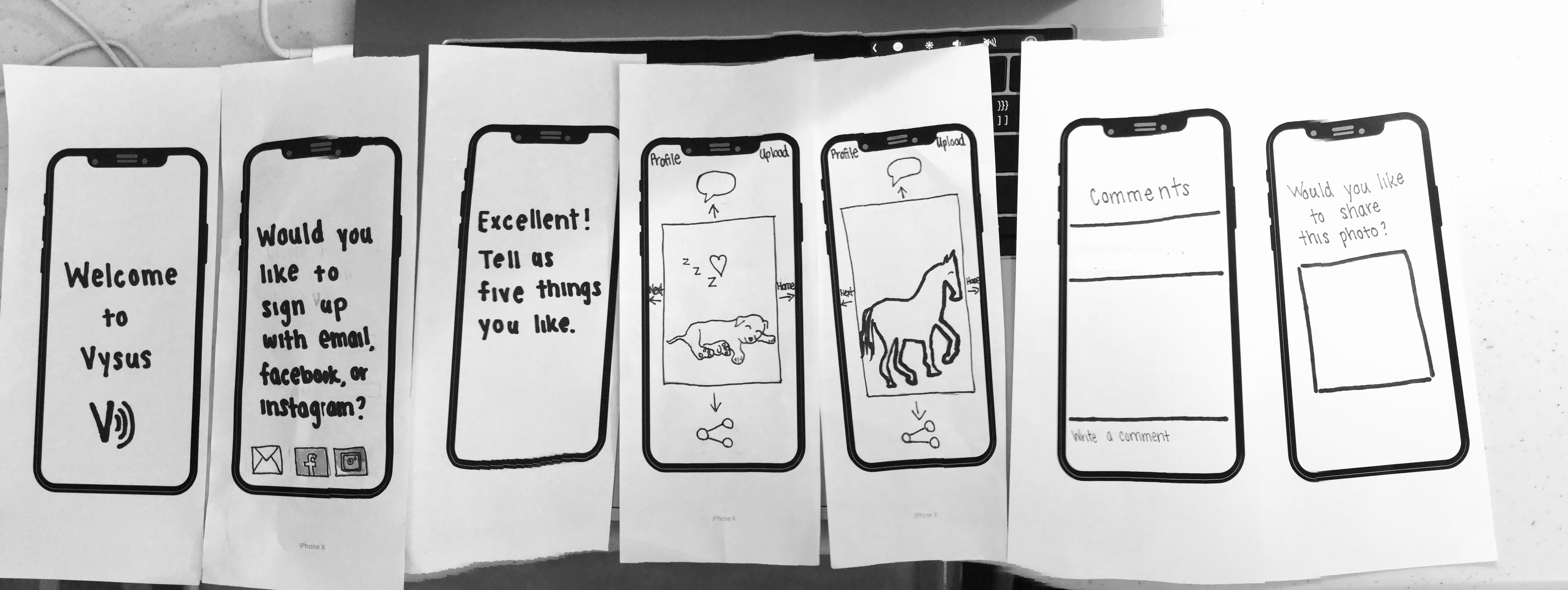This project taught me how to iterate through each step of the product design process from conducting and analyzing user interviews to constantly improving my team’s prototype. I learned the importance of always keeping in mind the target user’s needs. One of the challenges that I encountered was wanting to make the design of the user interface more complex as many apps today have intricate animations and displays. To design with accessibility at its core, I made sure to apply the feedback my team received from our user interviews such as making sure the font size of the screens was at least 36 pt. for easy-reading and colors between the text and background had a sharp contrast. I realized through designing Vysus that many social media apps are not designed around accessibility with small text and inaccurate alt text captions. Going forward, I hope to always design a product with accessibility at its core to ensure everyone is provided equal access.